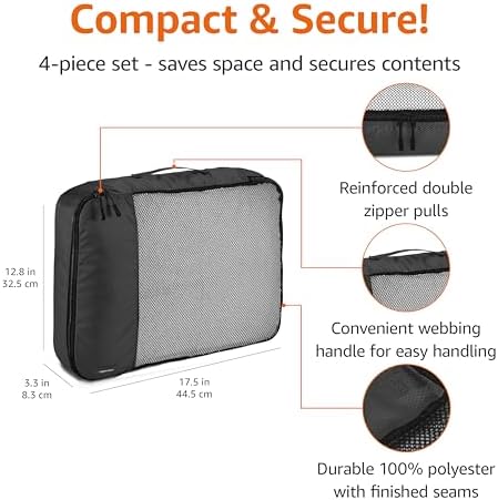 Amazon Basics 4 Piece Packing Travel Organizer Cubes Set – Large, Black