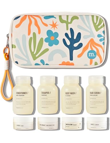 This Travel Essentials Toiletries Includes: 1 Orange Travel Pouch, 4 80ml Clear Travel Bottles, 4 15ml Clear/White Travel Jars, 1 Set of Transparent/White Label for Bottles, 1 Set of Transparent/White Label for Jars, 1 Set of Cute Sticker Silver/Gold. Travel toiletry bottles Can be sold as a set with MaisoNovo Countertop small travel containers tray for bathroom counter and soap tray for kitchen sink.