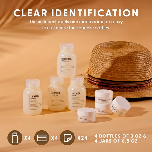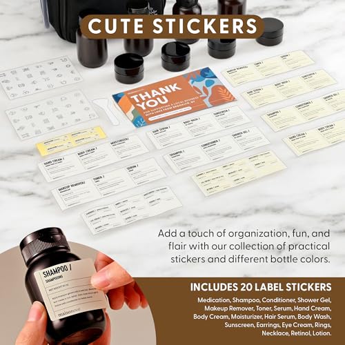 Personalized Organization: Easily identify your travel containers for toiletries with the included reusable travel toiletry containers waterproof labels! Customize your travel containers for shampoo, conditioner, lotion, sunscreen, and more – simply write, peel, and stick for effortless organization.