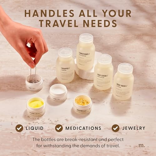 TSA Approved & Versatile: Fly confidently knowing your toiletries are secure in our leakproof, 80ml small plastic containers with lids. These travel shampoo bottles, travel conditioner bottles & travel lotion container are ideal for everything from liquids and gels to powders and pills! these empty travel size bottles are also great for medications, or jewelry.